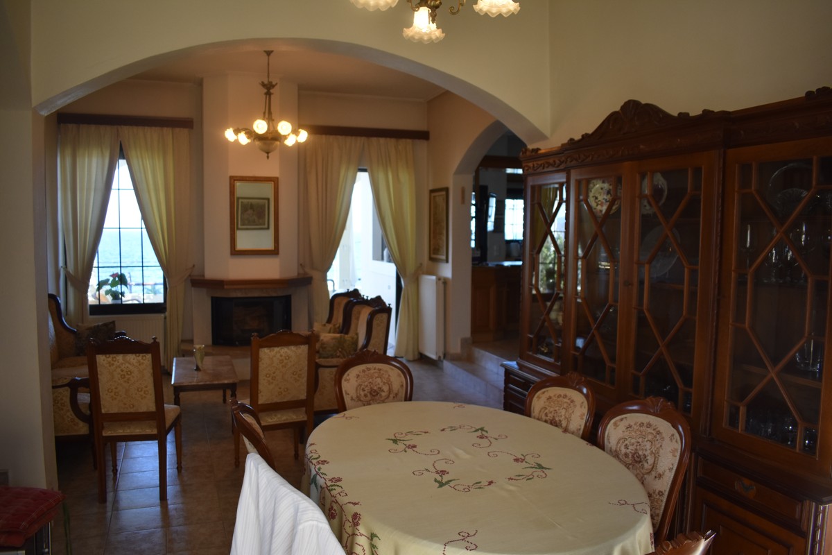 The property has a living and dining room with an energy fireplace and a study with a library. The living room has access to a spacious covered veranda with outstanding sea views.